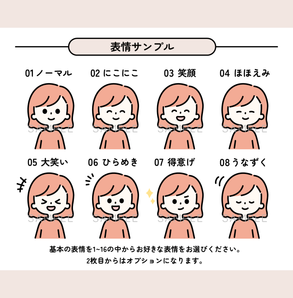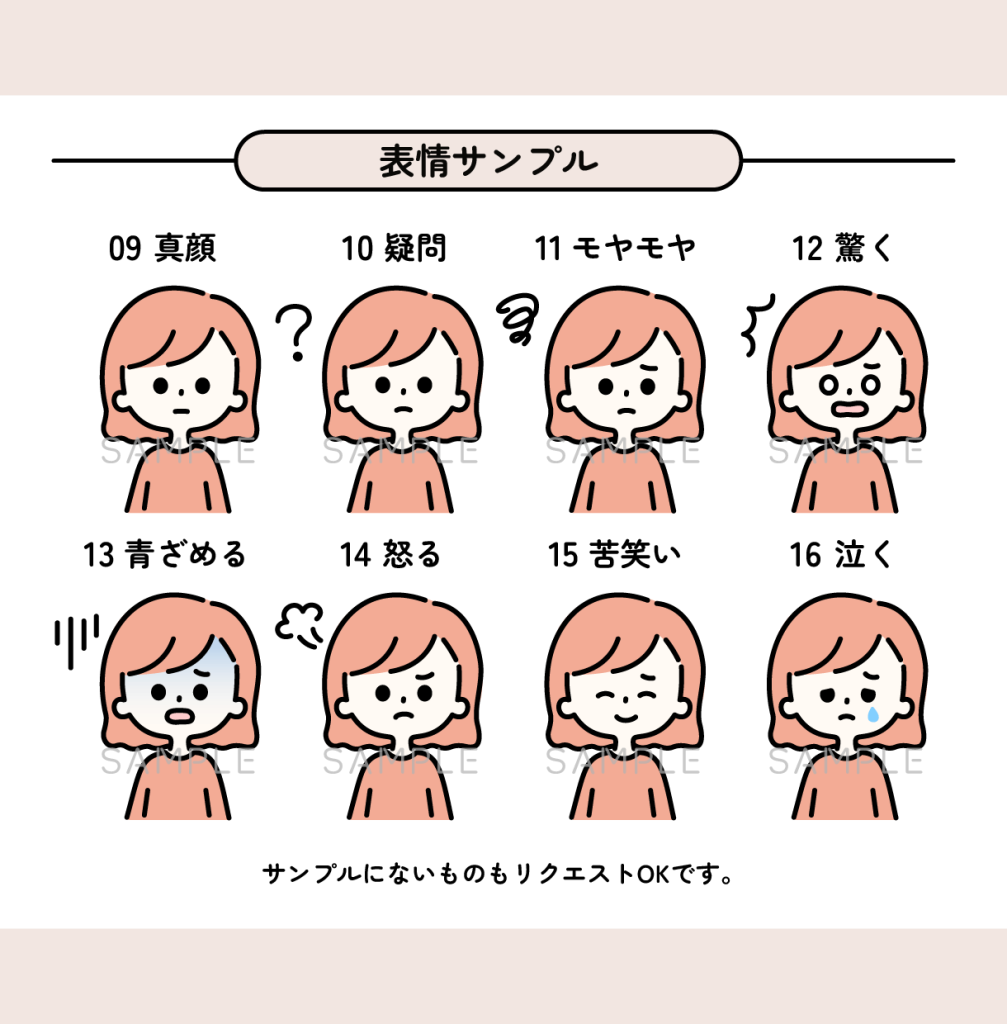 購入者の方が完成イメージを持ちやすいよう、豊富な表情やポーズをあらかじめ用意しました。