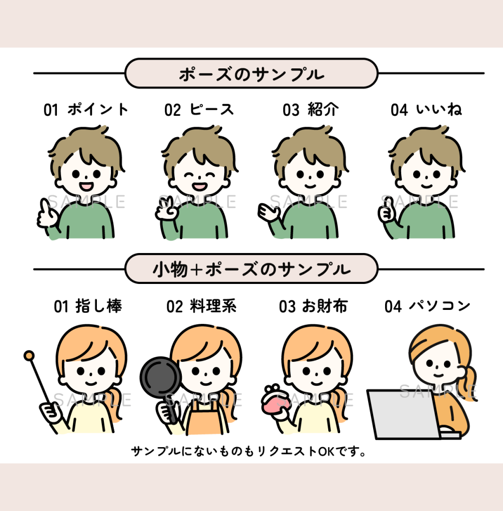 表情やポーズを自由に選べるセミオーダー形式です。
