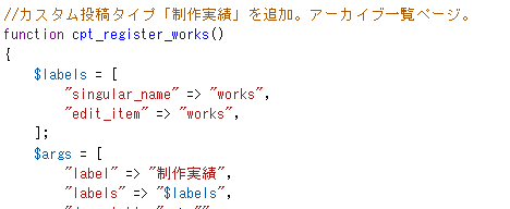 制作実績をカスタム投稿タイプ(functions.php)で実装しました。